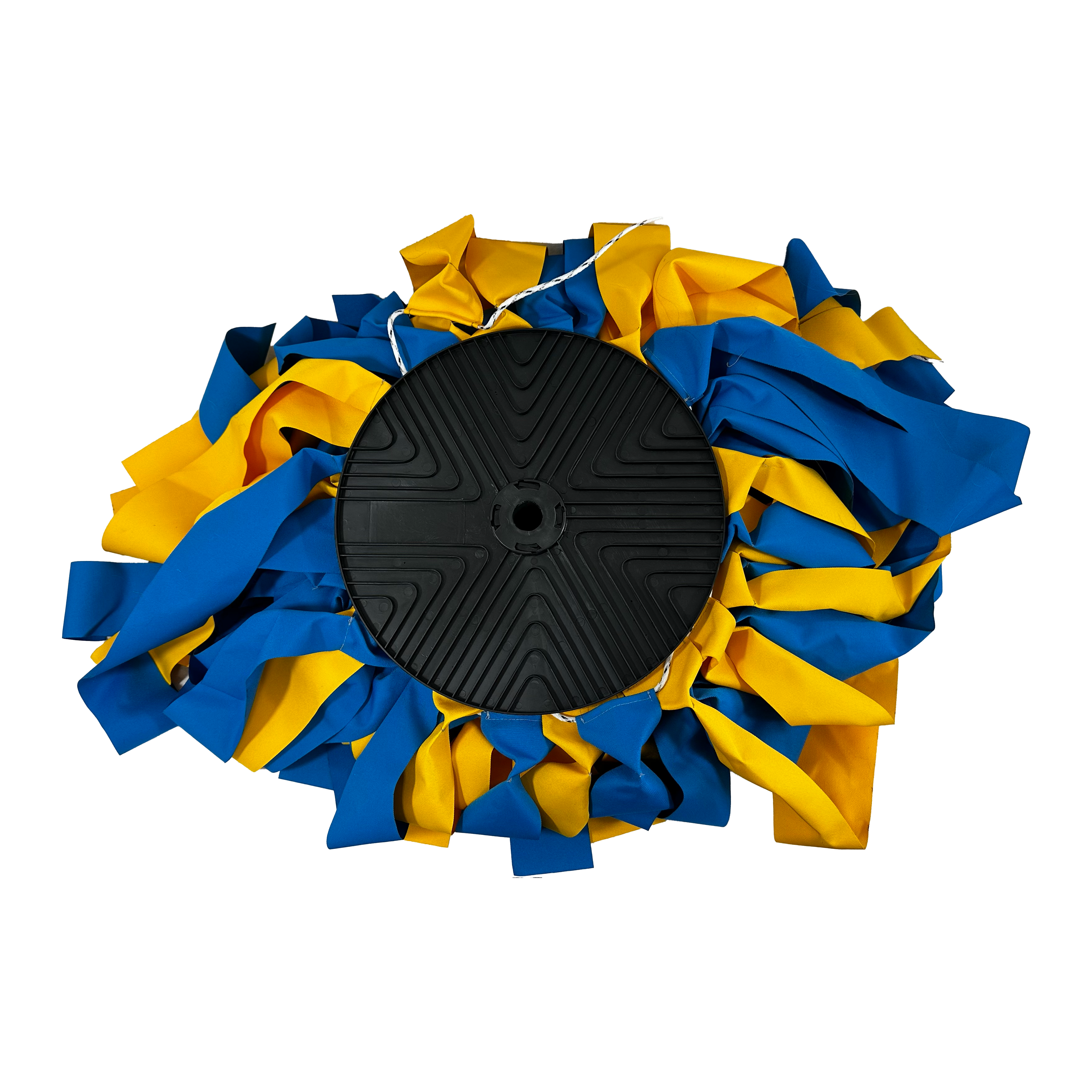 The blue and yellow Fladry flags hang below the polywire acting as a visual barrier. Margo Turbo Fladry works off of Wolves innate fear of the unknown. This makes them hesitant to approach and pass the Turbo Fladry. Our Turbo Fladry is constructed from a high-end woven Polywire that carries an electric charge when powered with an energizer. If an animal comes into contact with wire, it will receive a shock, reinforcing avoidance behavior.